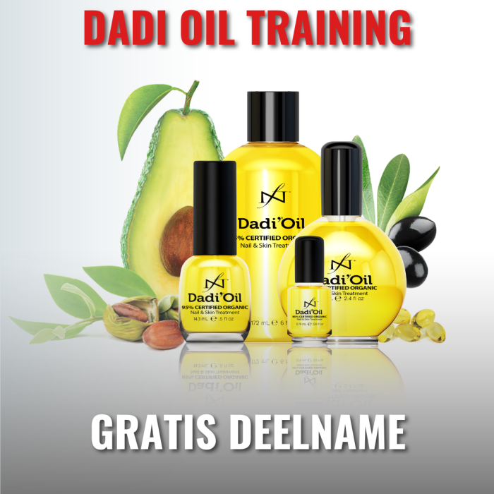 Dadi Oil product trainingBeauty, CursusagendaDoor ctinternational21 december 2022Voorjaar 2026 10.00 uur – 12.00 uur