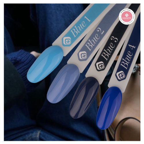 De Magnetic gelpolish collectie Blue richt zich volledig op blauwtinten — van subtiel pastel tot diep marineblauw — en straalt zowel rust als kracht uit. Deze collectie biedt voor iedereen de perfecte blauwe nuance.